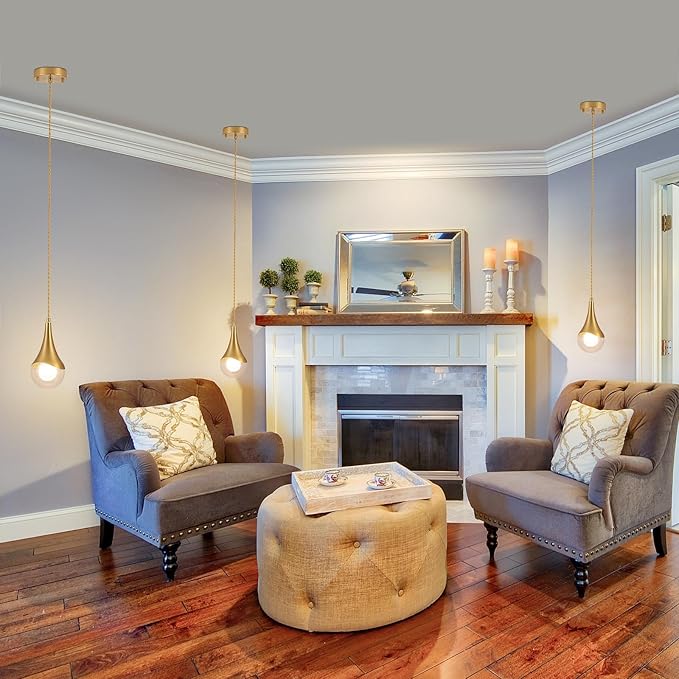 MWZ Gold Pendant Lights Kitchen Island 3 Pack, Modern Brass Raindrop Pendant Light Fixture Over Table with Clear Glass Globe Shade,Mini Teardrop Chandelier,Adjustable Cord Hanging Lighting for Sink