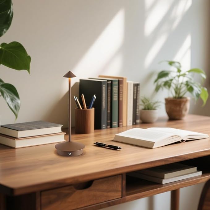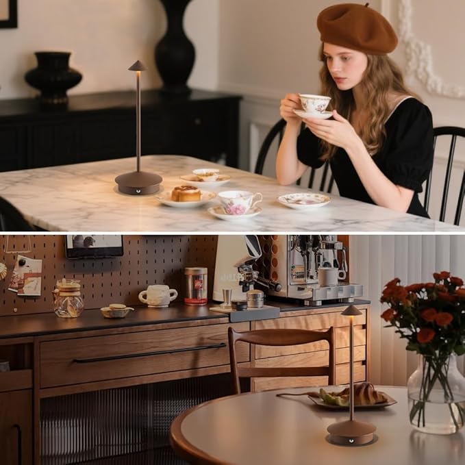 Cordless Table Lamp Set of 2, Rechargeable Portable LED Bedside Touch Lamp 6000mAh Battery Operated, 3 Color Stepless Dimming up, Wireless Battery Lamp for Dining/Outdoor/Bar/Patio/Party (Brown)