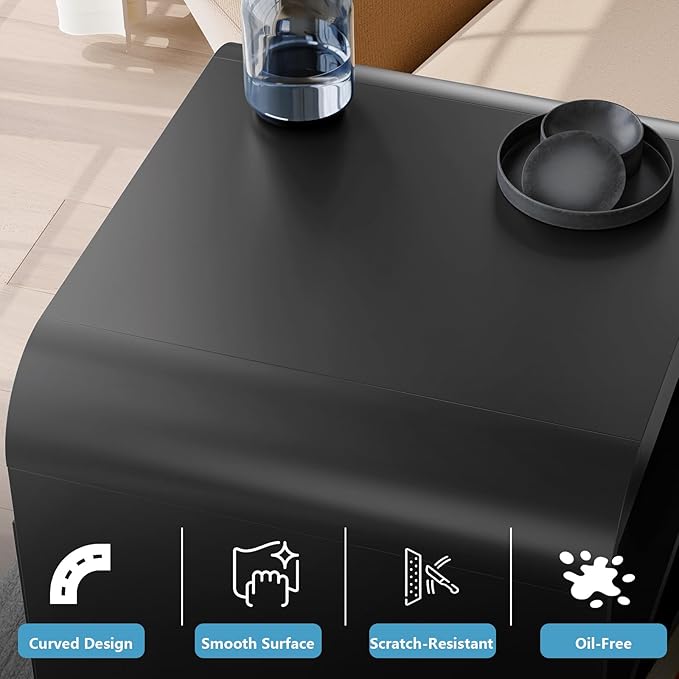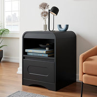 Night Stand Nightstand with Drawer Storage Curved Bed Side Table End Table Large Modern Wide Bedside Stand Tall Night Stands for Bedroom Living Room Sofa Couch Home Office, Black