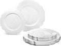 " OCCASIONS " 120 Plates Pack,(60 Guests) Heavyweight Wedding Party Disposable Plastic Plates Set -60 x 10.5'' Dinner + 60 x 8'' Salad/Dessert Plate (Imperial White & Gold)