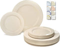 " OCCASIONS " 960pcs set (120 Guests)-Heavyweight Wedding Party Disposable Plastic Plate Set -120 x 10.5'' + 120 x 7.5'' + Silverware + Cups +linen like paper Napkins (Plain Ivory)
