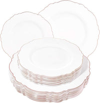 WDF 60pcs Rose Gold Plastic Plates-Baroque White &Rose Gold Disposable Plates including 30Plastic Dinner Plates 10.25inch, 30 Salad Plates 7.5inch for Wedding & Parties