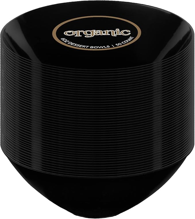 PLASTICPRO [6 OZ 200 Count] Black Plastic Organic Party Dessert bowls Premium heavyweight Elegant Disposable Tableware Dishes
