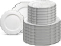 " OCCASIONS " 50 Plates Pack (25 Guests)-Heavyweight Wedding Party Disposable Plastic Plate Set -(25x10.5'' Dinner + 25x8'' Salad/dessert (Imperial in White/Blue & Silver)