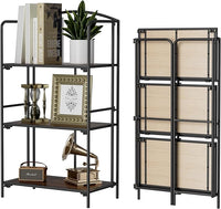 Crofy No Assembly Folding Bookshelf for Living Room, 3 Tier Black Collapsible Book Shelf for Home Office, Portable Bookcase Storage Organizer