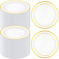 200 Pieces Disposable Plates Plastic Party Plates with Rim Hard Plastic Appetizer Salad Dessert 7.5 Inch Elegant Heavy Duty Tableware for Dinner Wedding Party Supplies(Gold Rim)