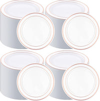 200 Pieces Disposable Plates Plastic Party Plates with Rim Hard Plastic Appetizer Salad Dessert 7.5 Inch Elegant Heavy Duty Tableware for Dinner Wedding Party Supplies(Rose Gold Rim)