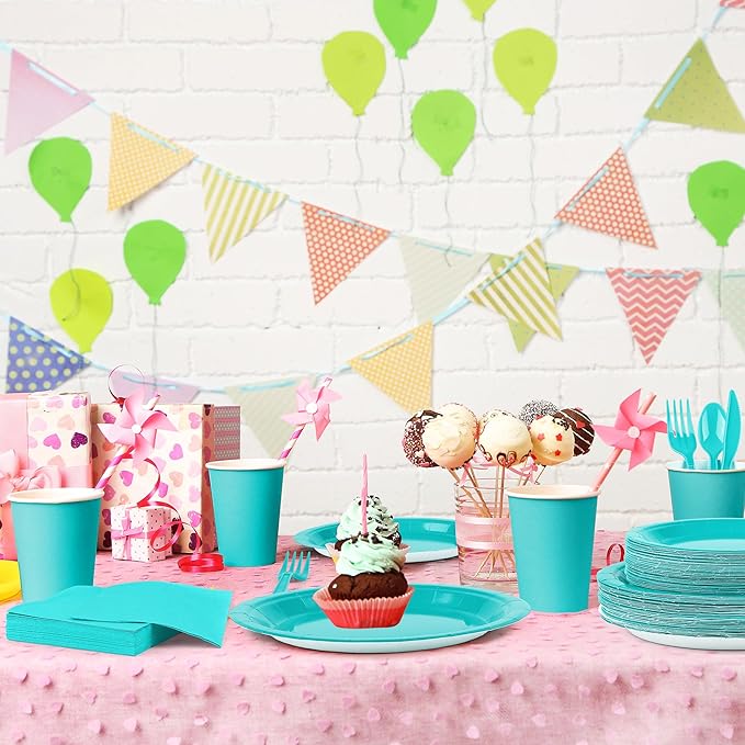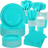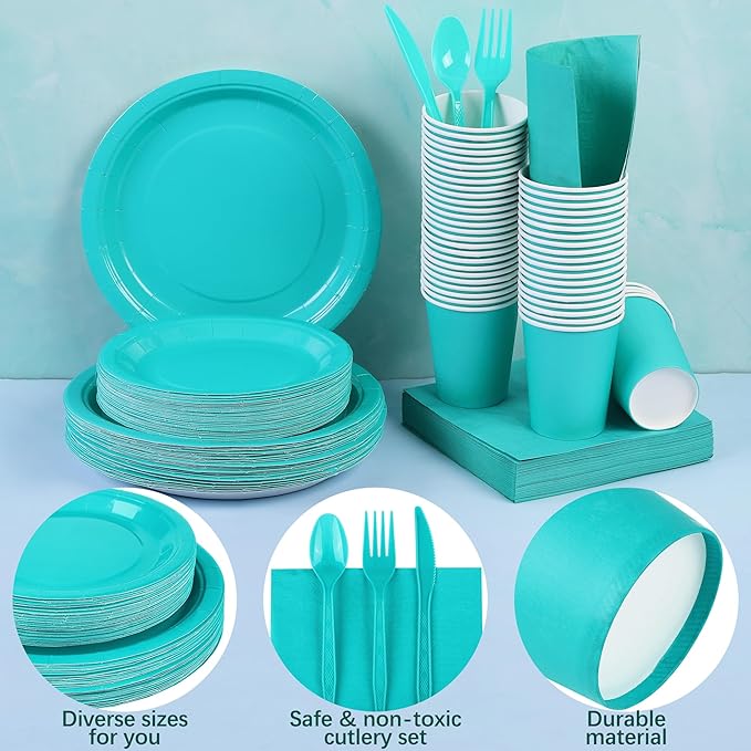 durony 350 Pieces Teal Blue Party Supplies Teal Blue Dinnerware Set Paper Plates Cup Napkins Serve 50 Guests for Birthday Wedding Baby Shower Party Family Picnic