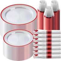 Goodluck 350 Piece Red Plastic Dinnerware Set for Party, Clear Disposable Plates for 50 Guests, Include: 50 Dinner Plastic Plates, 50 Dessert Plates, 50 Pre Rolled Napkins with Cutlery Set, 50 Cups