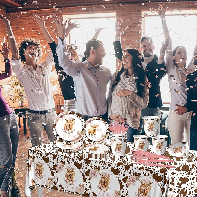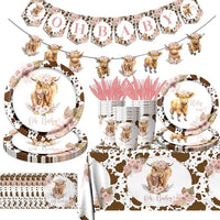 142Pcs Highland Cow Birthday Plates and Napkins,Highland Cow Baby Shower Decorations Western Theme Table Decorations for Baby Shower Party(20 Guests)