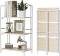 Crofy No Assembly Folding Bookshelf for Living Room, 4 Tier Gold Collapsible Book Shelf for Home Office, Portable Bookcase Storage Organizer