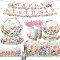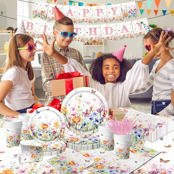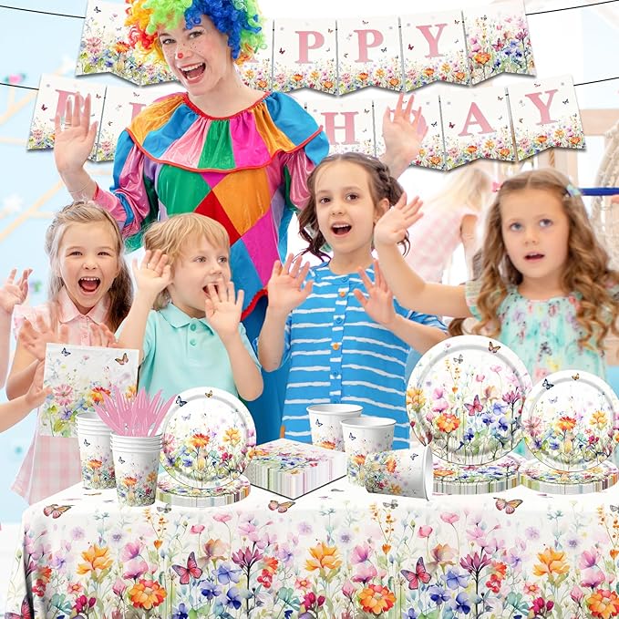 Wildflower Baby Shower Decorations,142Pcs Wildflower Baby in Bloom Plates and Napkins,Tablecloth,Cup Butterfly Floral Theme Table Decorations for Bridal Shower Birthday Party