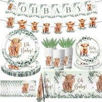 Highland Cow Birthday Decorations - 142Pcs Highland Cow Tableware Cow Plates and Napkins Western Theme Party Decorations for Birthday Baby Shower,Highland Cow Party Favors