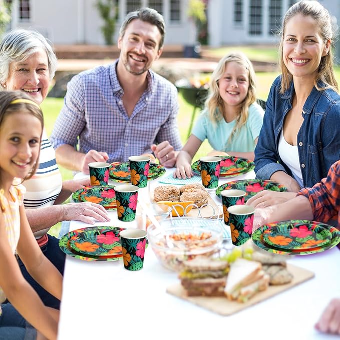 200 Pcs Tropical Nights Hawaiian Aloha Party Supplies Serve 50 Guests Luau Paper Plates Cups Napkins for Summer Beach Tableware Pool Party