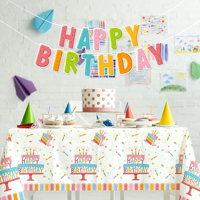 Happy Birthday Party Supplies Set for 25 -Kit with Cake Design Includes Plates, Napkins, Cups, Tablecloth & Banner - for Boys & Girls Birthday Party Decorations