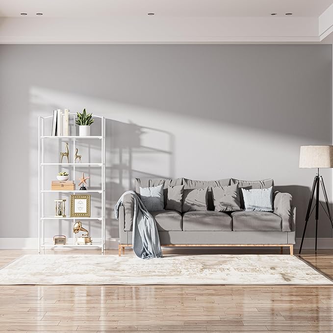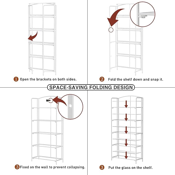 Crofy No Assembly Folding Bookshelf for Living Room, 5 Tier White Collapsible Book Shelf for Home Office, Portable Bookcase Storage Organizer