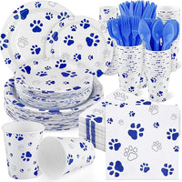 400 Pieces Blue Paw Disposable Party Tableware Sets Dog Puppy Supplies Including Plates Cups Napkins Cutlery Serves 50 for Birthday Puppy Theme Party Decorations