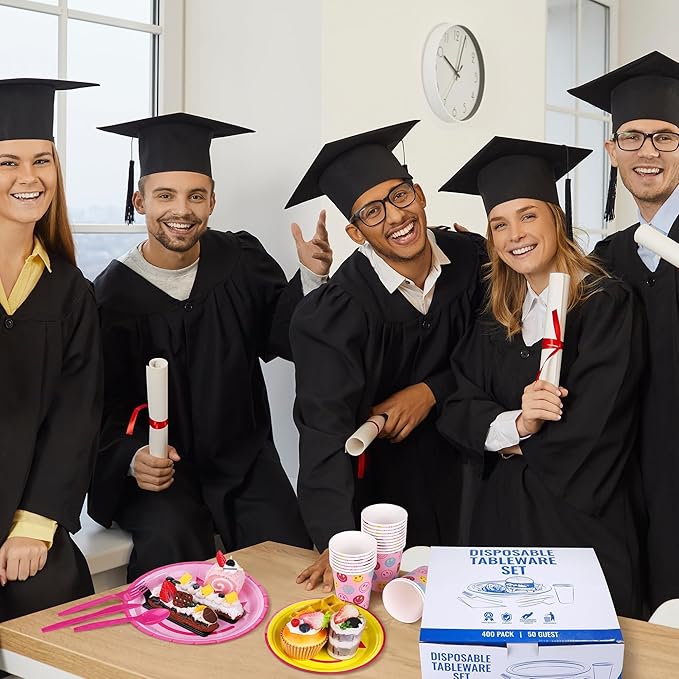 400 Pieces Preppy Smiley Face Party Tableware Set Paper Smile Face Plates Napkins Paper Cups Cutlery for Preppy Birthday Party Decorations Baby Shower Decor, Serve 50 Guest