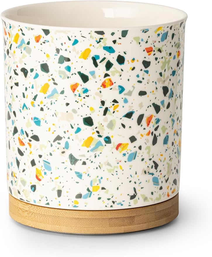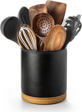Nucookery 360°Rotating Utensil Holder, 7.2" Kitchen Utensil Crock, Ceramic Cooking Utensil Organizer with Countertop-Protection Cork Bottom for Farmhouse Kitchen Decor Christmas (Marble Pattern)
