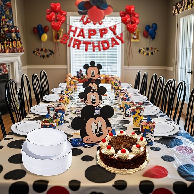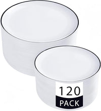 LIYH 120 Pcs White Plastic Plates with Black Rim - Disposable Plates Dishes for Party Wedding Includes 60 Dinner Plate 10.25" 60 Dessert Plate 7.5" for Party Birthdays 60 Guests