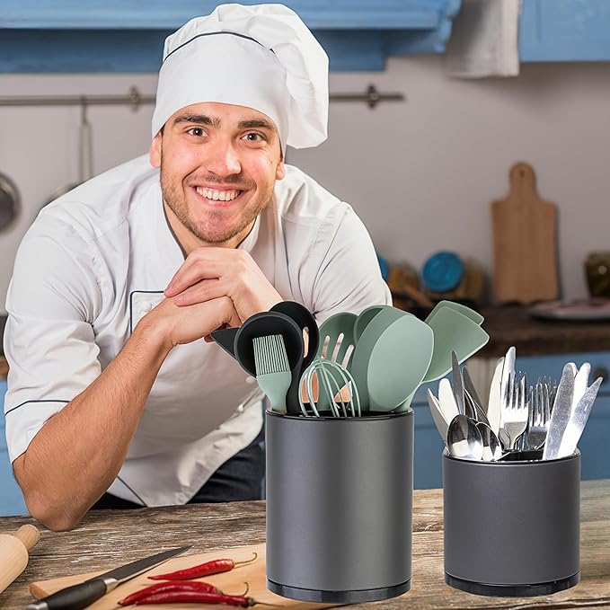 Utensil Holder,Extra Large Utensil Holder for Kitchen Counter, Silverware Organizer, Stainless Steel Storage Cooking Caddy Flatware Spoon Spatula Tool Cutlery Container(2 Set)
