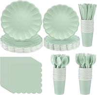 Newtay 350 Pcs Light Green Scalloped Paper Plates Shell Edge Disposable Tableware Cocktail Napkins Cups Plastic Spoons Forks Knives for Wedding Baby Shower Picnic Birthday Party Supply for 50 Guests
