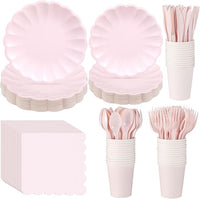 Newtay Light Pink Scalloped Paper Plates Shell Edge Disposable Tableware Cocktail Napkins Cups Plastic Spoons Forks Knives for Wedding Baby Shower Picnic Birthday Party Supply for 50 Guests
