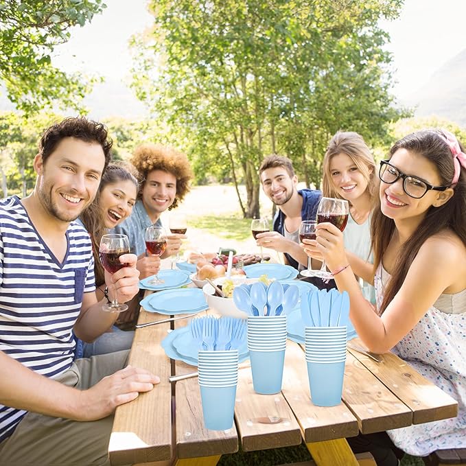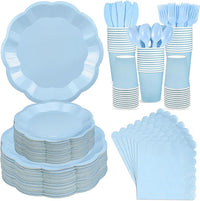 350 Pcs Light Blue Party Supplies Include Scalloped Plate Napkin Cup Forks Knives, Plastic Cutlery 50 Guest Disposable Party Tableware Set for Wedding Baby Shower Bridal Shower Birthday Parties