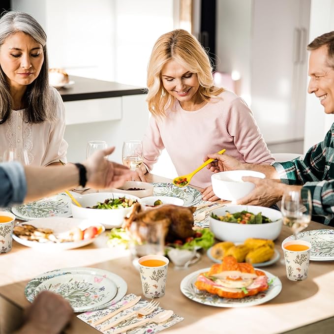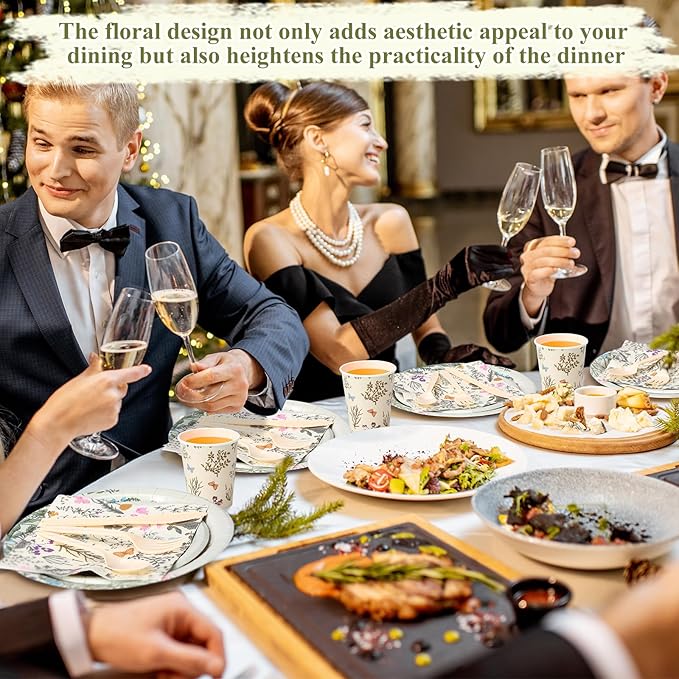 400 Pcs Wild Floral Disposable Paper Plates Napkins Cups Serve 50 Watercolor Floral Tableware Set for Spring Wedding Tea Party Decoration Bridal Baby Shower(Vintage Color, Classic Style)