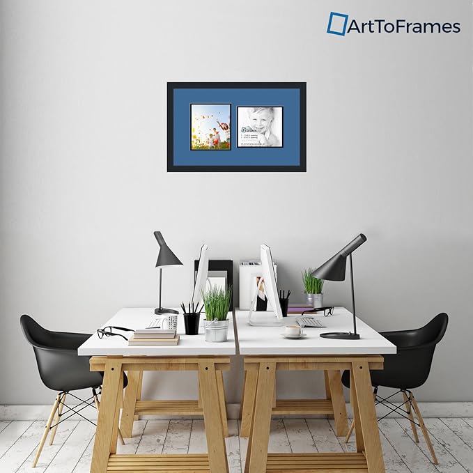 ArtToFrames Collage Photo Frame Double Mat with 2 - 7.5x8.5 Openings and Satin Black Frame