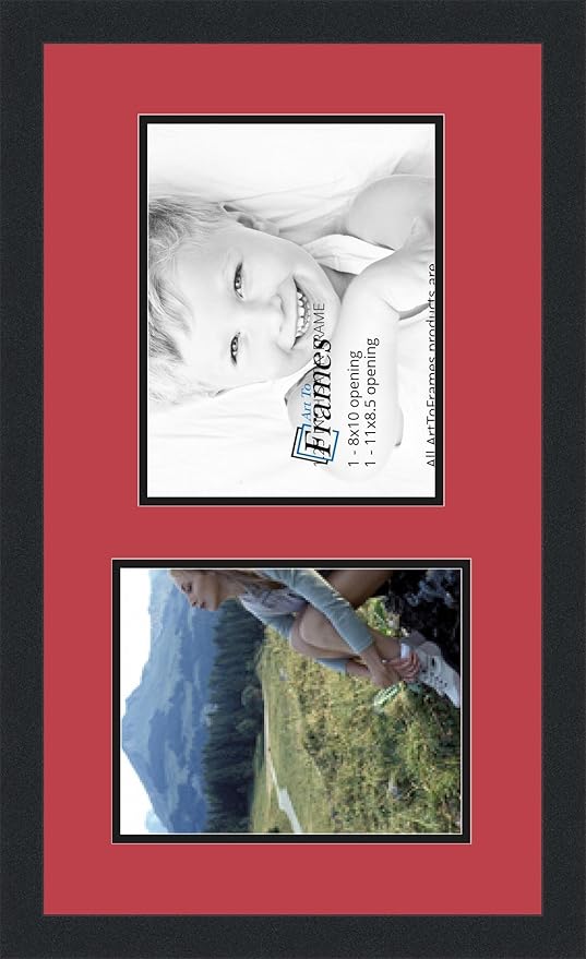 ArtToFrames Collage Photo Frame Double Mat with 1 - 8.5x11, 8x10 Openings and Satin Black Frame