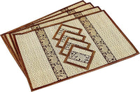 Hand-Woven Wicker Reed Placemats Coaster Set Eco-Friendly Alternative to Plastic Heat Resistant Thai Style Durable Easy to Clean for Dining Table Set of 4 (Large, Dark Gold)