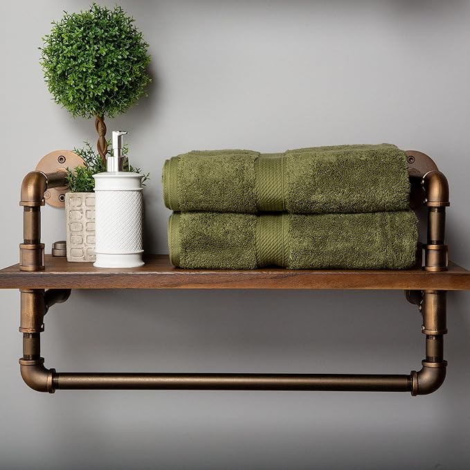 BLUENILEMILLS Premium Towel Collection, Egyptian Cotton Towels for Shower and Bathroom Assorted 2-Piece Towel Set, 30" x 55", Forest Green by Blue Nile Mills