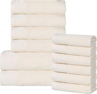 Superior Honeycomb 100% Cotton 500 GSM 12 Piece Bath Towel Set, 6 Washcloths, 4 Hand, 2 Bath Towels, Ideal for Bathroom, Kitchen or Beach, Quick Dry, Jacquard and Solid, Mid-Weight, Ivory