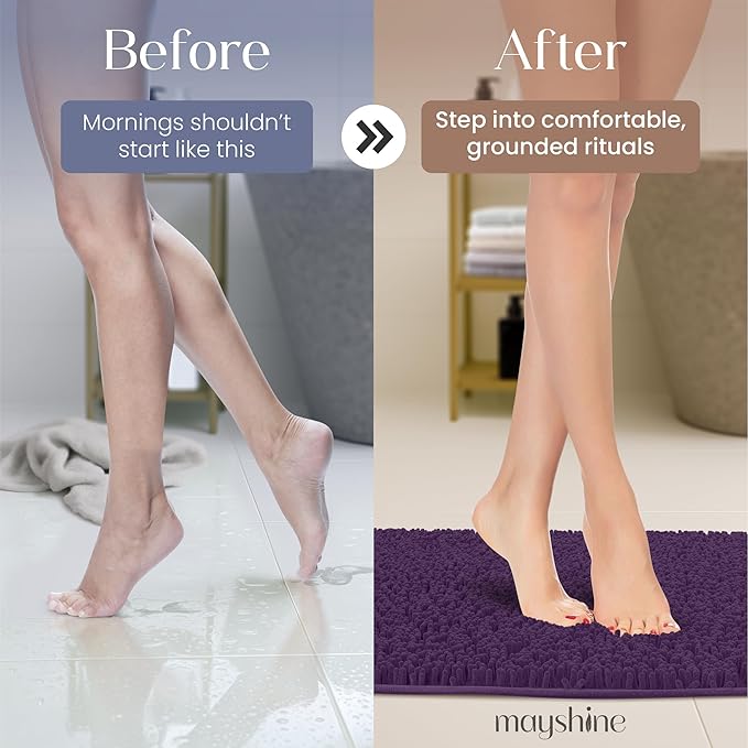 MAYSHINE Plush Shaggy Chenille Bath Mat | Extra Soft, Super Absorbent, Non-Slip Bathroom Rug | Fluffy Microfiber, Area Rug Sets for Bathroom Floor, Kitchen, Living Room | 39"x24" | Plum