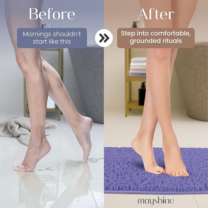 MAYSHINE Plush Shaggy Chenille Bath Mat | Extra Soft, Super Absorbent, Non-Slip Bathroom Rug | Fluffy Microfiber, Area Rug Sets for Bathroom Floor, Kitchen, Living Room | 39"x24" | Lavender