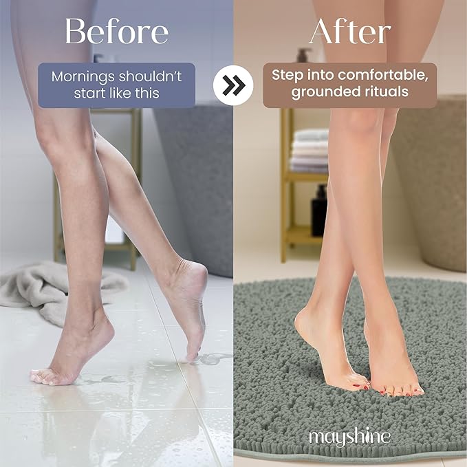 MAYSHINE Round Area Rug Set for Bathroom | Soft Plush Chenille Bath Mat, Water Absorbent Non-Slip Bathroom Rug | Washable Shag Carpet for Shower, Bedroom, or Home Décor | 36"x36" (Round) | Sage Green