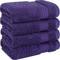 Cotton Paradise 100% Cotton Turkish Washcloth Set for Bathroom, 4 Piece Soft Absorbent Small Hand Face Towels Wash Rags, Purple