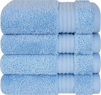 Cotton Paradise 100% Cotton Turkish Washcloth Set for Bathroom, 4 Piece Soft Absorbent Small Hand Face Towels Wash Rags, Sky Blue