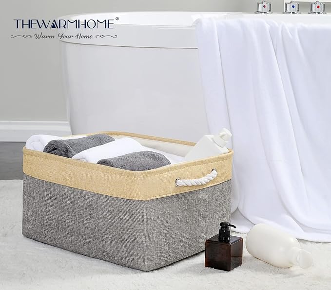 TheWarmHome Storage Baskets for Organizing, Extra Large-3Pack, 17.7L×13.8W×9.8H inch Large Sturdy Storage Bins, Decorative Storage Baskets for Shelves Closet Nursery (Gold&Grey)