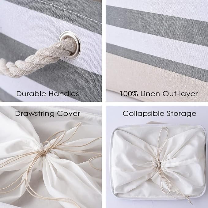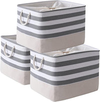 TheWarmHome Jumbo Storage Bins Baskets, Sturdy Fabric Organizing Basket W/Handles, Decorative Foldable Storage Baskets for Shelves Closet Nursery Toy (Grey&White Stripes 3 Pack, 20.5Lx15.7Wx13.8H in)