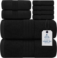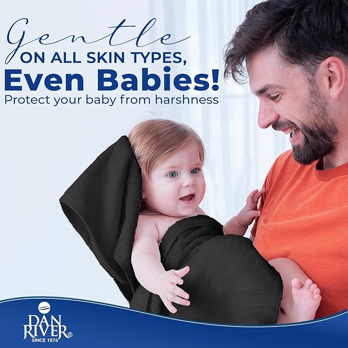 DAN RIVER 8 PC Luxury Bath Towels for Bathroom, 2 Bath, 2 Hand, and 4 Wash Cloths, 600 GSM 100% Ring Spun Cotton Towel Set, Highly Absorbent, Gym, Hotel, and Spa, Black