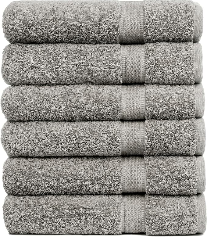 Pleasant Home Bath Towels Set of 6 (24” x 50”) 100% Cotton, 515 GSM | Lightweight, Soft & Absorbent Luxury Towels for Bathroom | for Gym, Pool & Spa | 6 Pack, Gray