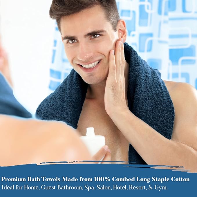 DAN RIVER Bath Towels Set of 4, 27 x 54 Inches, 100% Cotton, Larger & Lighter Weight, Quicker to Dry, Super Soft and Absorbent, Ideal Opal Blue Bath Towel for Daily Use