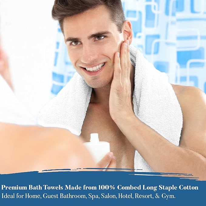 DAN RIVER Bath Towels Set of 4, 27 x 54 Inches, 100% Cotton, Larger & Lighter Weight, Quicker to Dry, Super Soft and Absorbent, Ideal White Towels for Daily Use