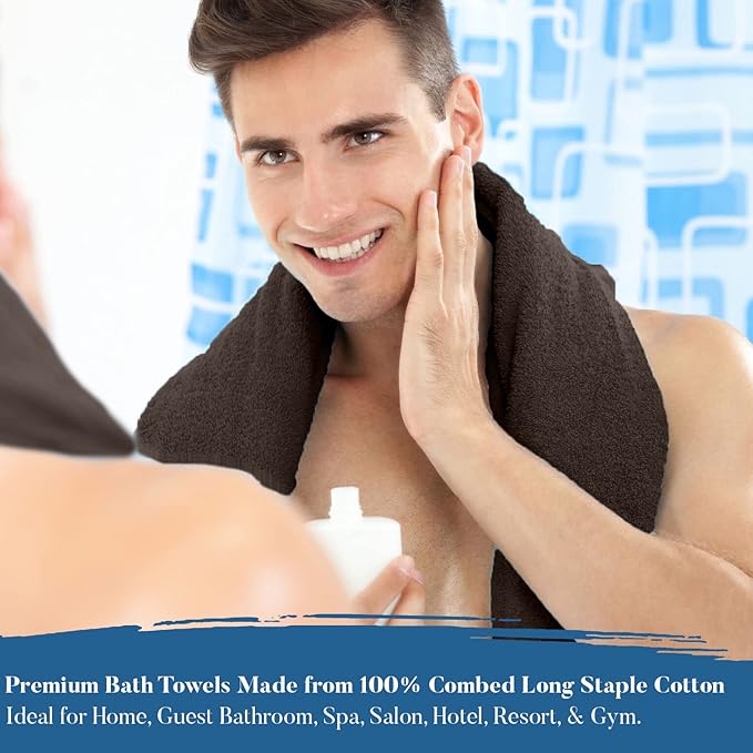 DAN RIVER Bath Towels Set of 4, 27 x 54 Inches, 100% Cotton, Larger & Lighter Weight, Quicker to Dry, Super Soft and Absorbent, Ideal Bathroom Towels for Daily Use, Brown