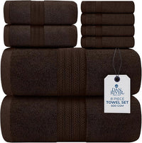 DAN RIVER 8 PC Luxury Bath Towels for Bathroom, 2 Bath, 2 Hand, and 4 Wash Cloths, 600 GSM 100% Ring Spun Cotton Towel Set, Highly Absorbent, Gym, Hotel, and Spa, Brown