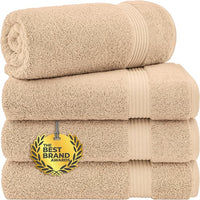 Cotton Paradise 4 Piece Turkish Bath Towels for Bathroom, 100% Cotton Extra Large Soft Plush Towels Bathroom Set, Beige