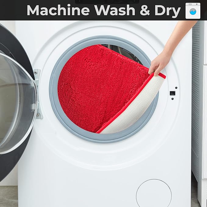 YHF Bathroom Rug Set 2 Piece, Extra Thick & Soft Microfiber Shaggy, Machine Washable Bath Mats, Absorbent Bath Rugs, Non-Slip Rubber Backing Bath Mat for Bathroom Floor, Tub and Shower, Red