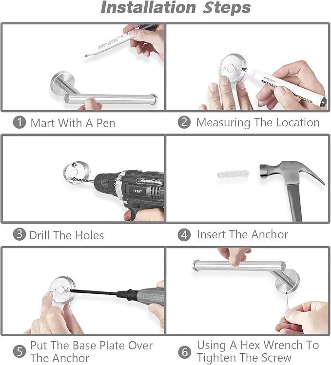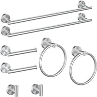 Cilee 8 Piece Brushed Nickel Bathroom Hardware Set, 24inch Bathroom Towel bar+Towel Ring+Toilet Paper Holder+ Robe Towel Hook, SUS304 Stainless Steel Bathroom Accessory Set